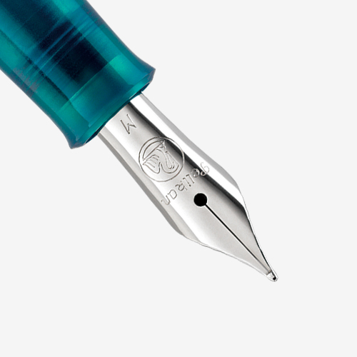 Todos los elementos de esta serie Classic 205, como anillos y clip, lucen con una apariencia de plata después de ser altamente pulidos. La pluma fuente Classic M205 Apatite está equipada con el sistema diferenciado de émbolo de Pelikan. El plumín de acero inoxidable altamente pulido viene en los anchos EF, F, M y B para adecuarse a la escritura de su preferencia. El bolígrafo está equipado con un mecanismo retráctil para un manejo más conveniente.