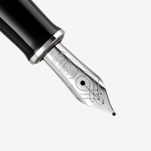 Los notables instrumentos de escritura ganan un brillo especial con los anillos dobles y el clip de pico característicos de Pelikan. La pluma fuente tiene un plumín de oro 14 quilates completamente refinado con rodio, lo que le da apariencia de plata y asegura una experiencia de escritura particularmente agradable y suave.