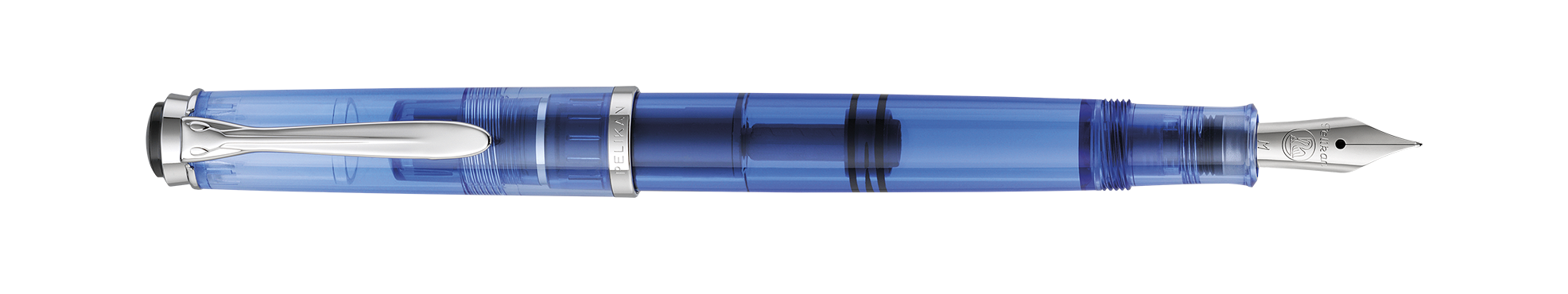 In order to make this fountain pen even more attractive, it was equipped with an additional ring at the top of the cap. This ring is plated with 24-carat gold, just like the clip, the rings, and the stainless steel nib. The nib is available in four sizes. Every fountain pen is offered in the attractive, blue gift box G5. This series is made in Germany with the Pelikan know-how of decades and is only available for a limited period of time.