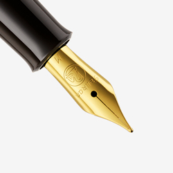 The fountain pen with piston filling mechanism provides a smooth 24-carat gold-plated stainless-steel nib and is available with the nib sizes EF, F, M or B.