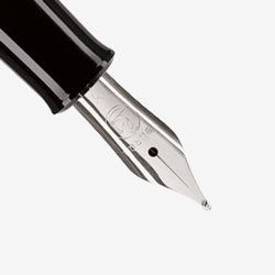 The Classic M 215 Ring uses a reliable piston-filling mechanism and has a transparent-anthracite ink viewing window, which is typical for a classical fountain pen. It is equipped with a polished high-quality stainless-steel nib, available in several nib sizes.