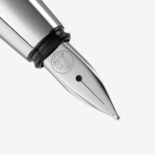 The polished stainless-steel nib provides a pleasant writing feel and is available in EF, F, M and B nib sizes. The matching ballpoint pen with twist mechanism, and rollerball are also available. Quality, made in Germany.